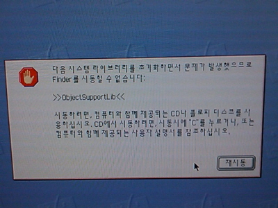 G4, OS9.2를 사용중인데요. 위와 같은 메시지가 뜨면서 구동이 안되네요.